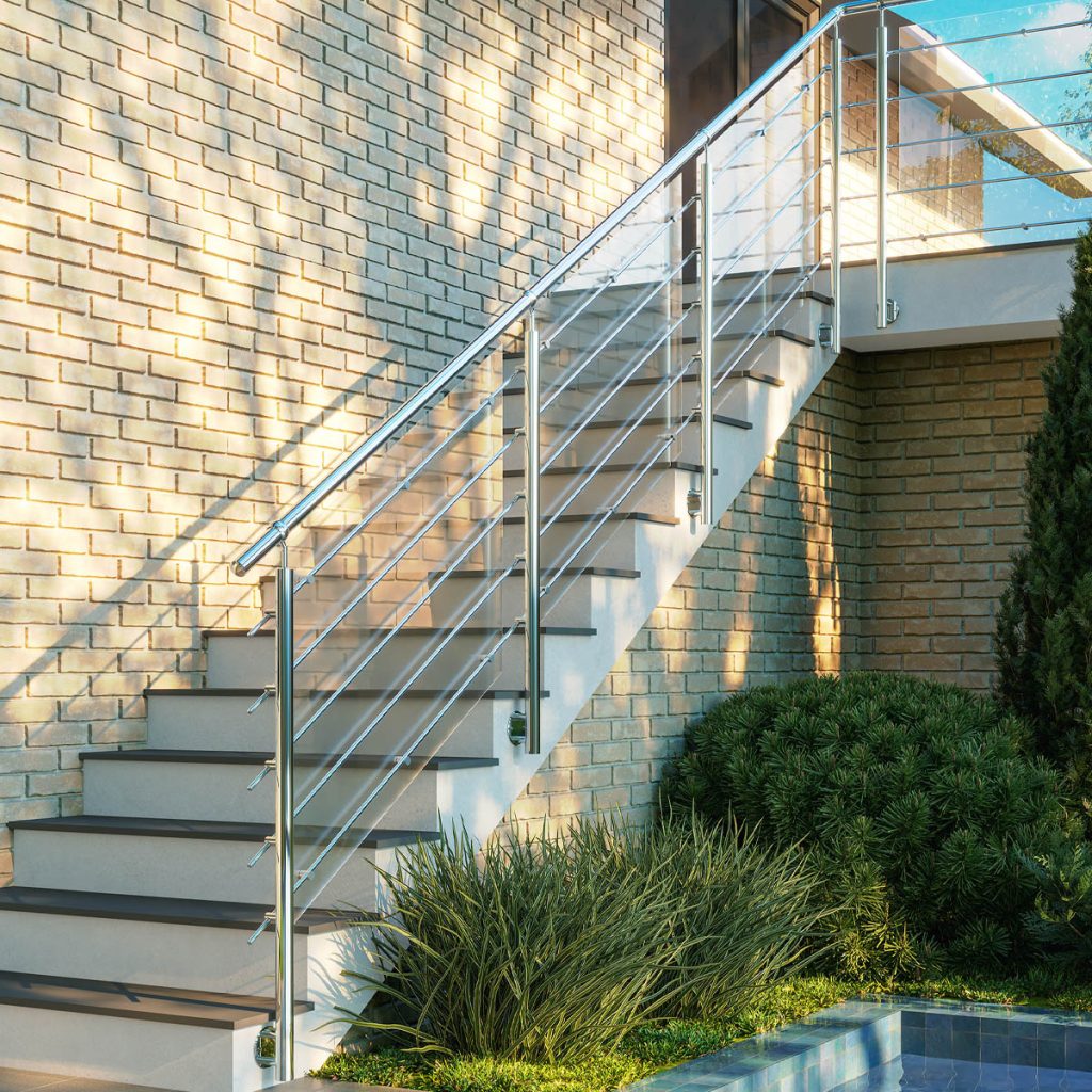 Barandilla de acero inoxidable AISI 304 satinado en kit lista para instalar. Módulo básico B1 L1500 mm compuesto por 2 Postes reforzados con tubo diam. 42,4×2 mm, pasamanos diam. 42,4×2 mm con soportes antiescalada, 9 filas de varillas diam. 12×1,5 mm con sus respectivos soportes, tapones terminales. Anclaje a pared (tornillos y tacos no incluidos). […]